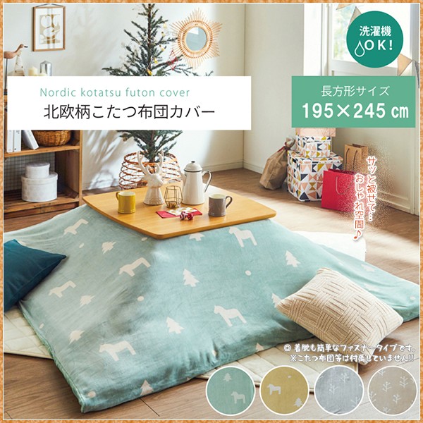 こたつ 掛布団 カバー ファスナータイプ 長方形 北欧風 ホース柄 小枝柄 馬 おしゃれ かわいい 暖かい フランネル 洗える カバー 約195×245cm