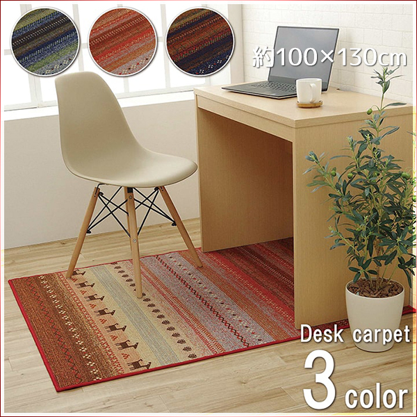 デスクカーペット おしゃれ ギャベ柄 ギャッベ ノルディック 東欧デザイン テレワーク ルームマット 子供部屋 仕事 新入学 かわいい 約100×130cm
