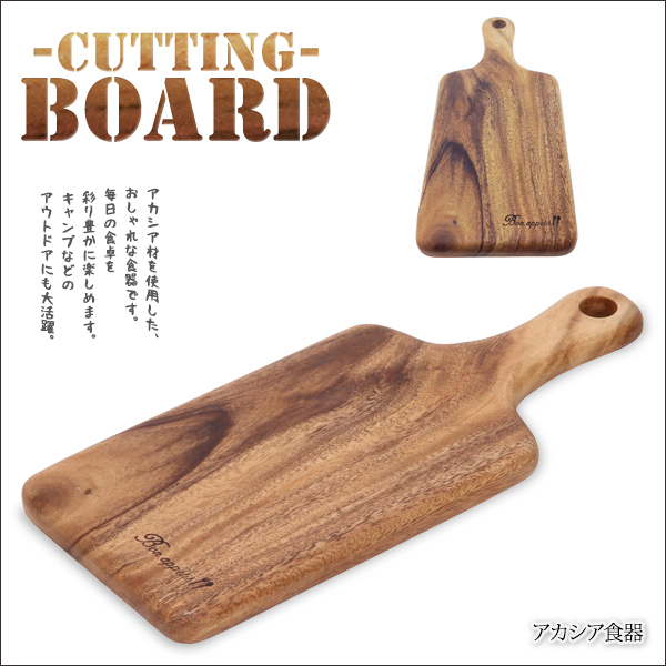 アカシア材を使用した、おしゃれな天然木製のカッティングボードです。サラダ、パスタ、パン等の器にも最適。毎日の食卓を彩り豊かに楽しめます。キャンプなどのアウトドアにも大活躍。