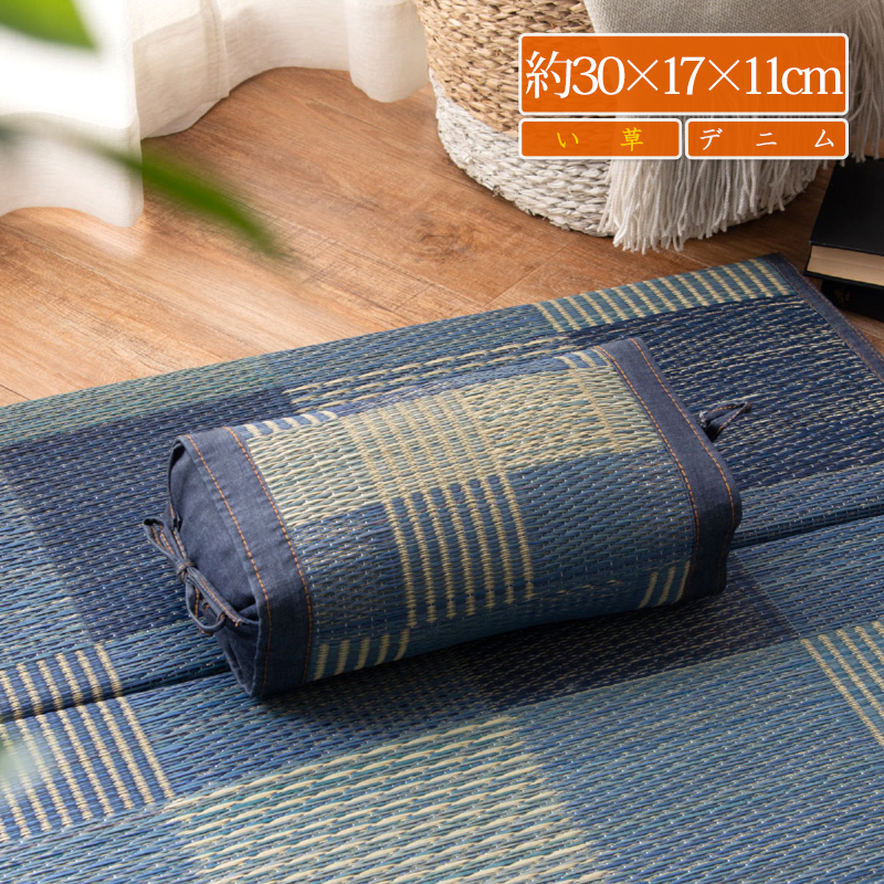 い草 枕 夏用 昼寝枕 仮眠枕 まくら ピロー デニム おしゃれ 天然素材 いぐさ 消臭 涼感 さらさら コンパクト 約30×17×11cm