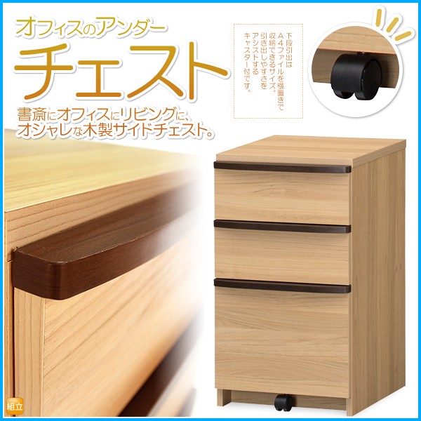 オフィス サイド チェスト デスク チェスト アンダーチェスト 木製 3段 袖机 チェスト サイドチェスト おしゃれ 北欧風 木目 収納 事務チェスト ナチュラル