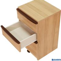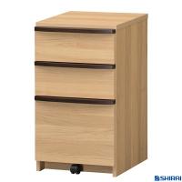 スチール製には無い木のぬくもりを感じることができるデスク用チェストです。引き出しやすさをアシストするキャスターを付けています。下段引出はA4ファイルを横置きで収納できるサイズ。高い品質と信頼で50年以上の実績「白井産業」の製品です。