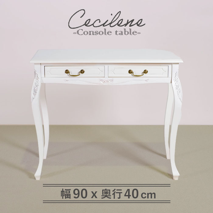 コンソールテーブル 幅90cm シャビーシック フレンチ マホガ二ー材 ホワイト アンティーク調 白家具 ヨーロッパ調 パソコンデスク テーブル 猫脚