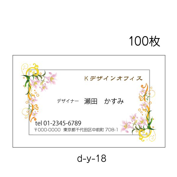 名刺印刷 作成 校正あり 送料無料 100枚 おしゃれ 美容 エステ スナック お花屋さん 百合 デイサービス 介護 d-y-18