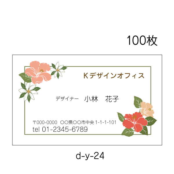 名刺印刷 作成 校正あり 送料無料 100枚 かわいい キュート 赤い花 花屋 美容 ハイビスカス ボタニカル d-y-24