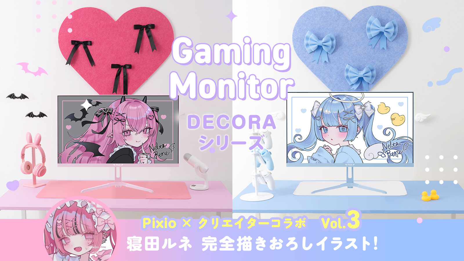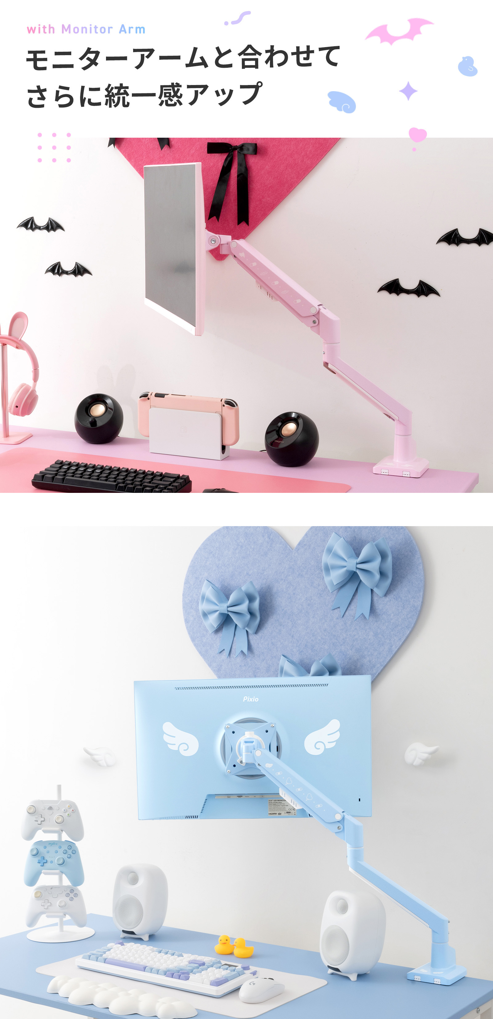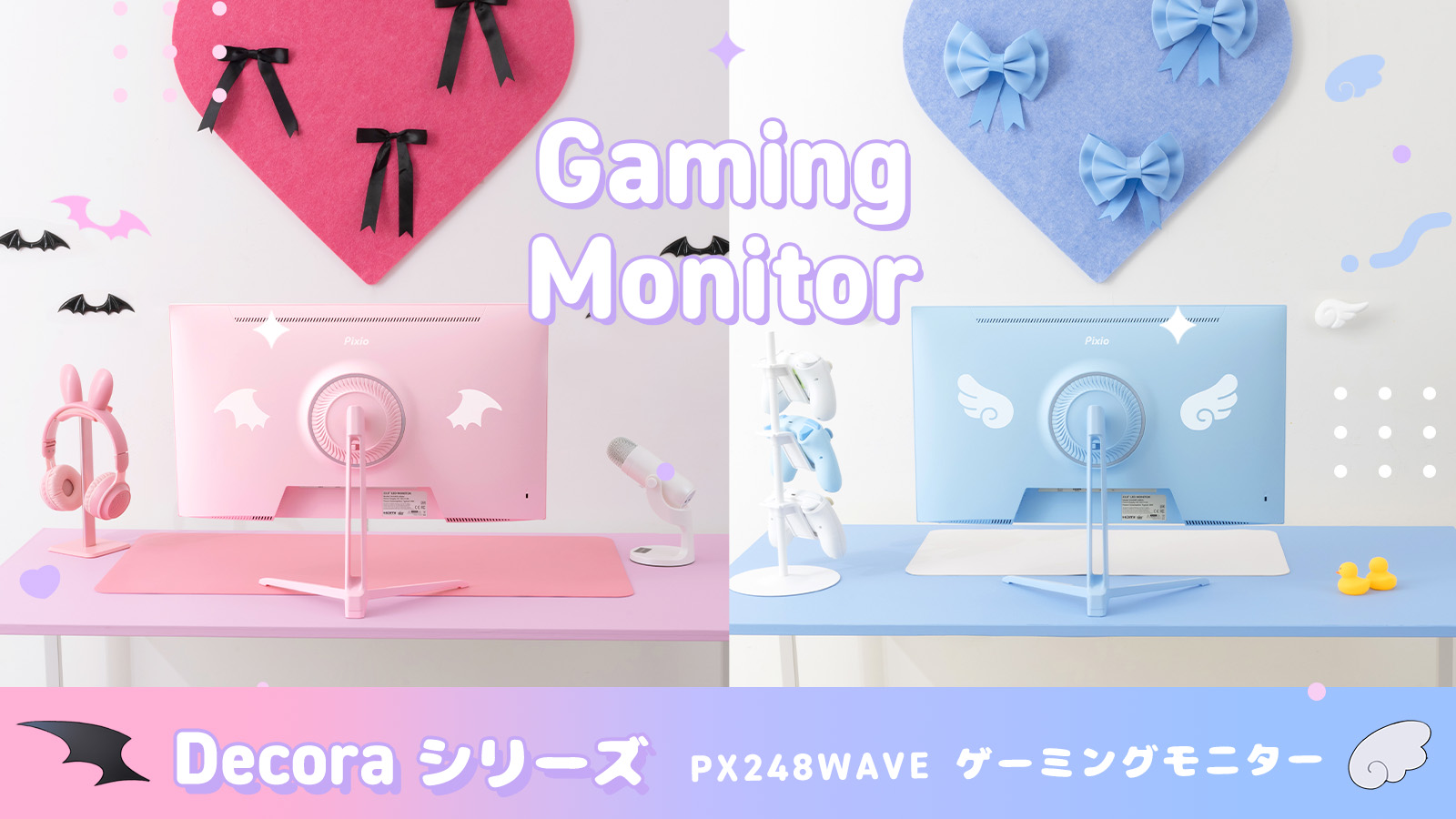 Pixio ゲーミングモニター Decora エンジェル デビル PX248WAVE 24インチ Decoraシリーズ ブルー ピンク 200hz pcモニター 120Hz 144Hz 165Hz 対応 モニター