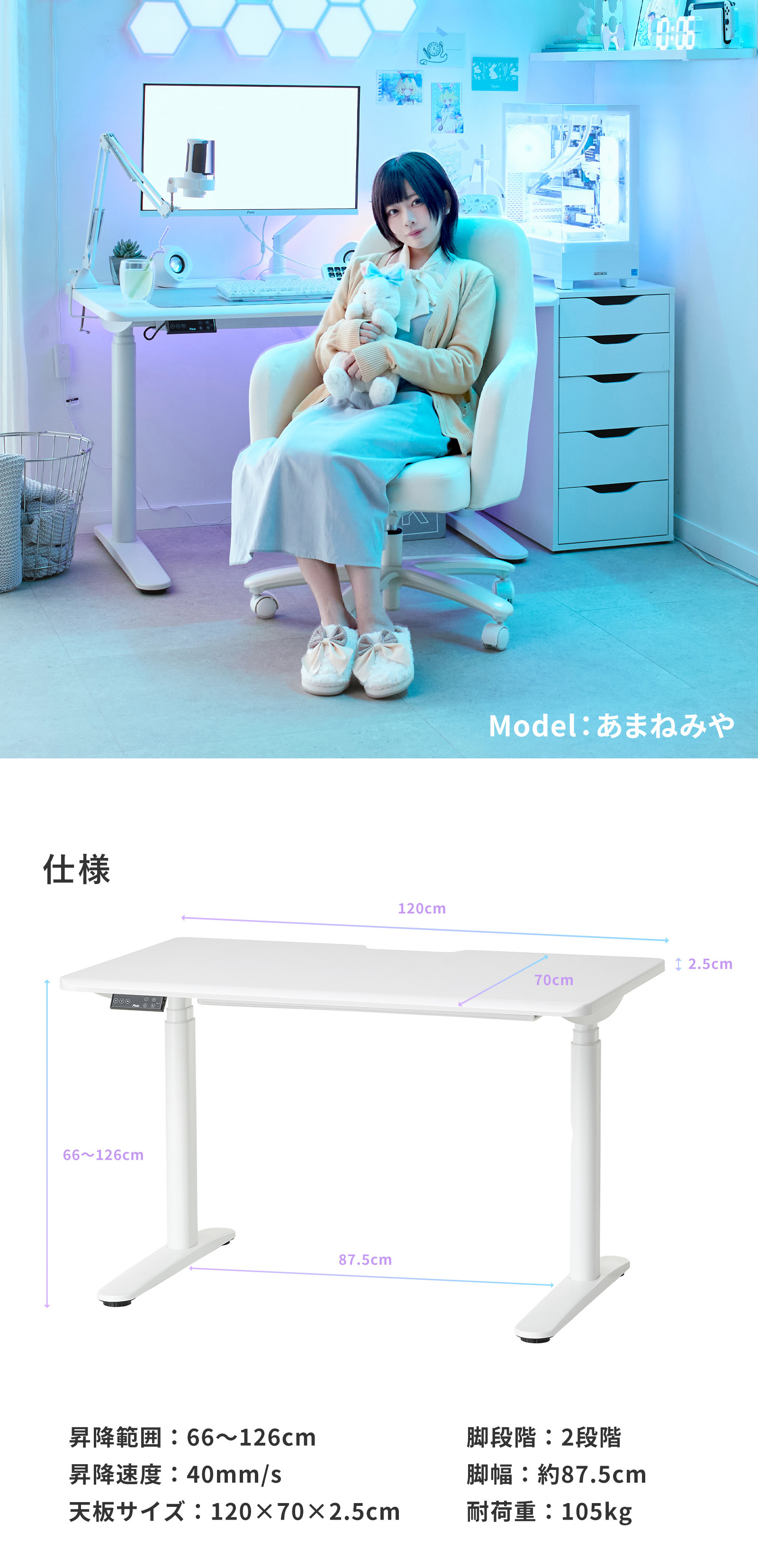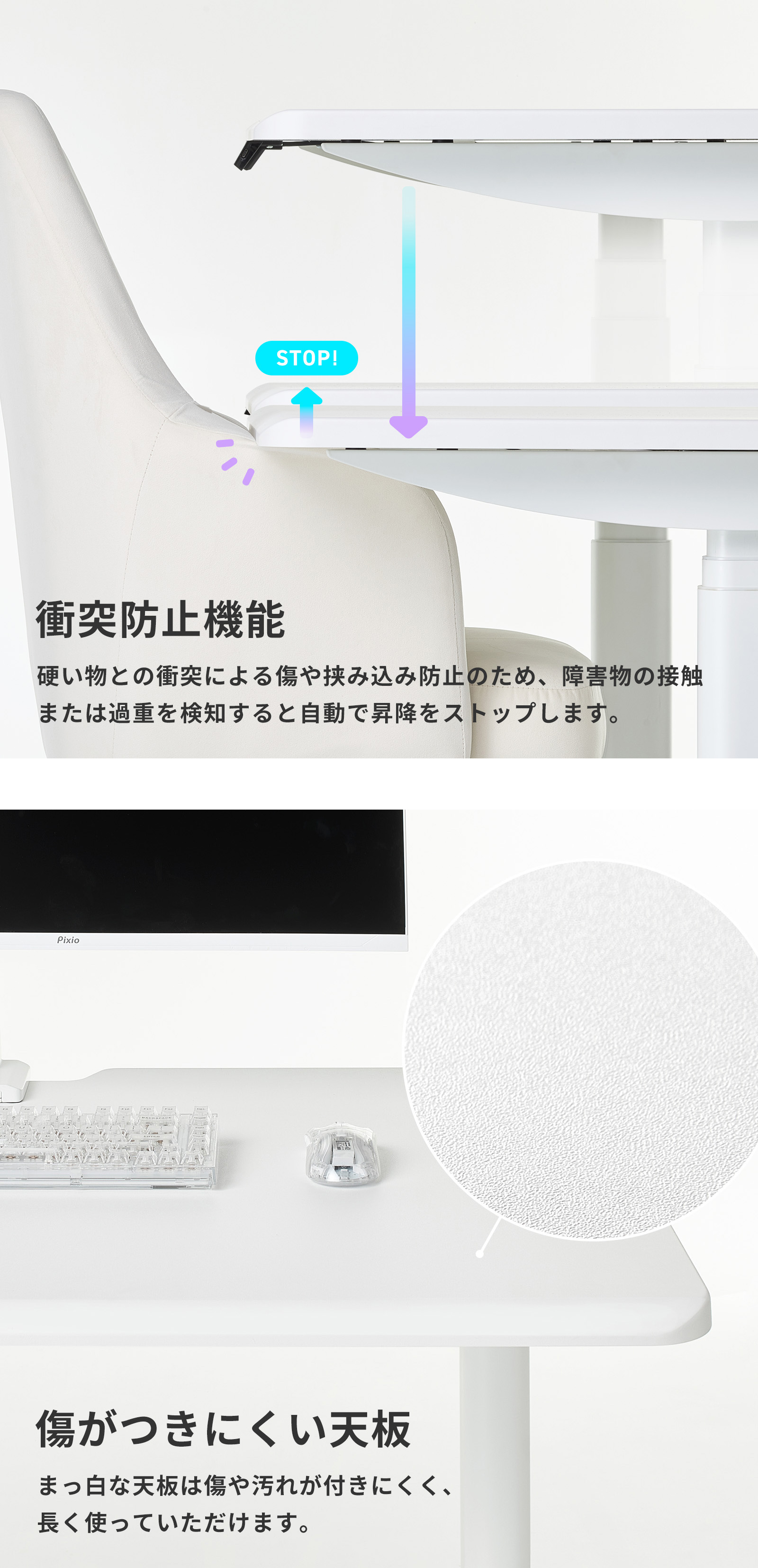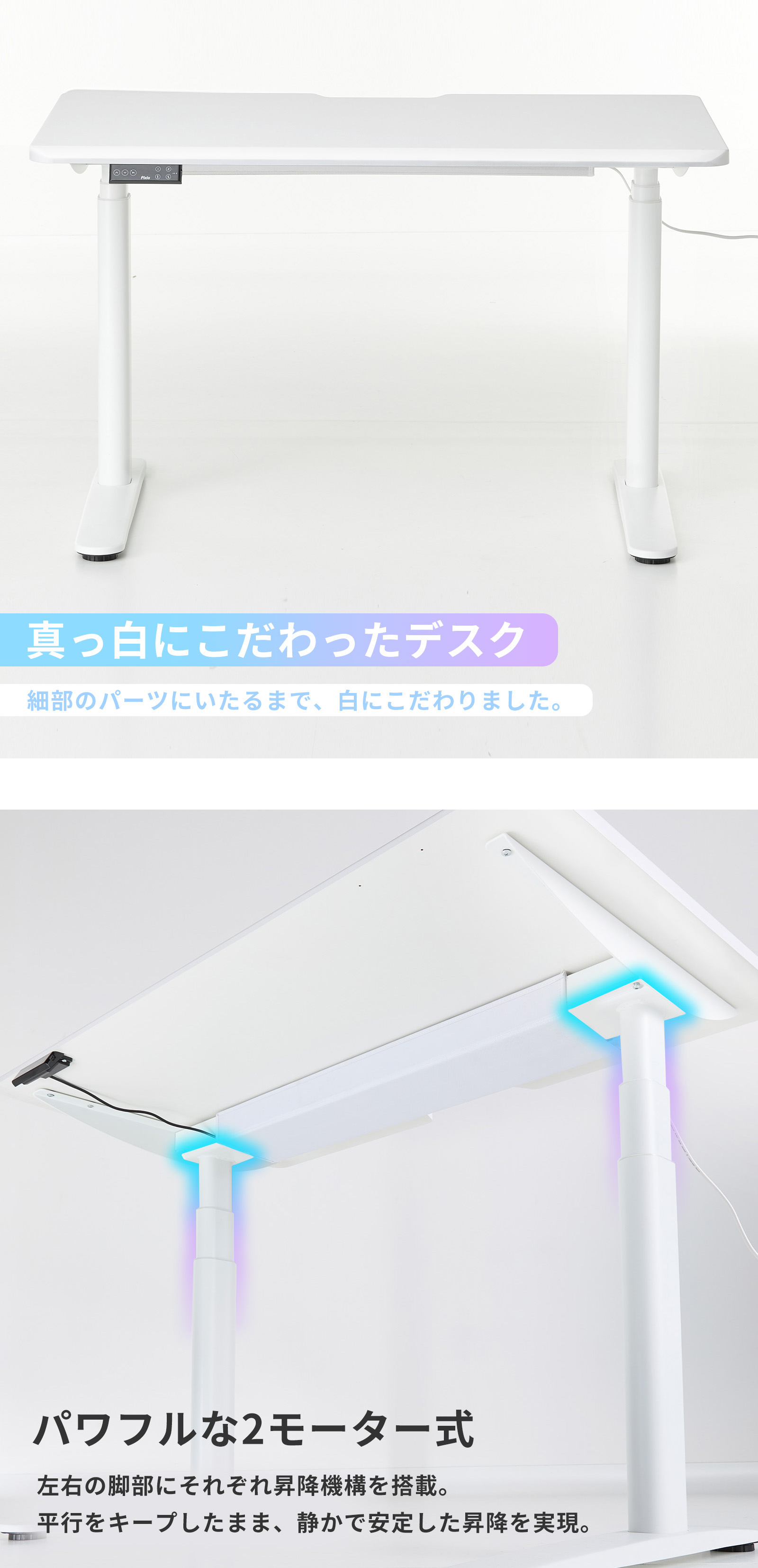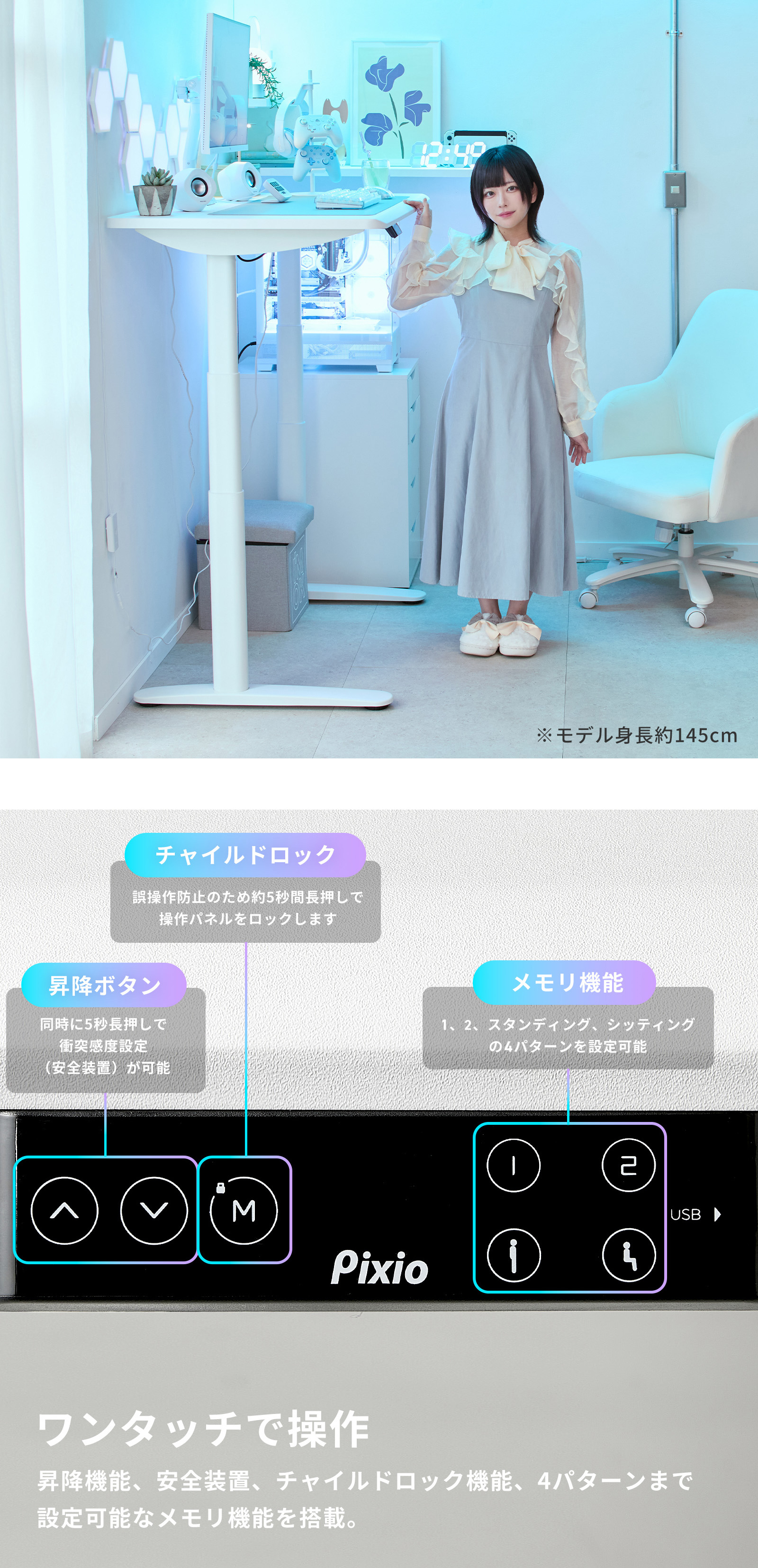ゲーミングデスク 1200mm 電動昇降 ホワイト 白 おしゃれ かわいい 昇降デスク 電動 パソコンデスク オフィスデスク 幅120 奥行70 スタンディングデスク Pixio