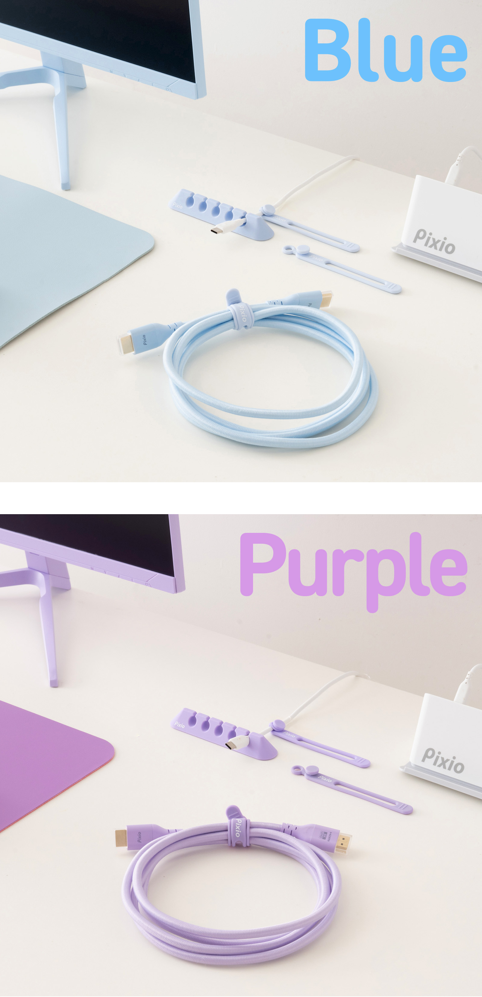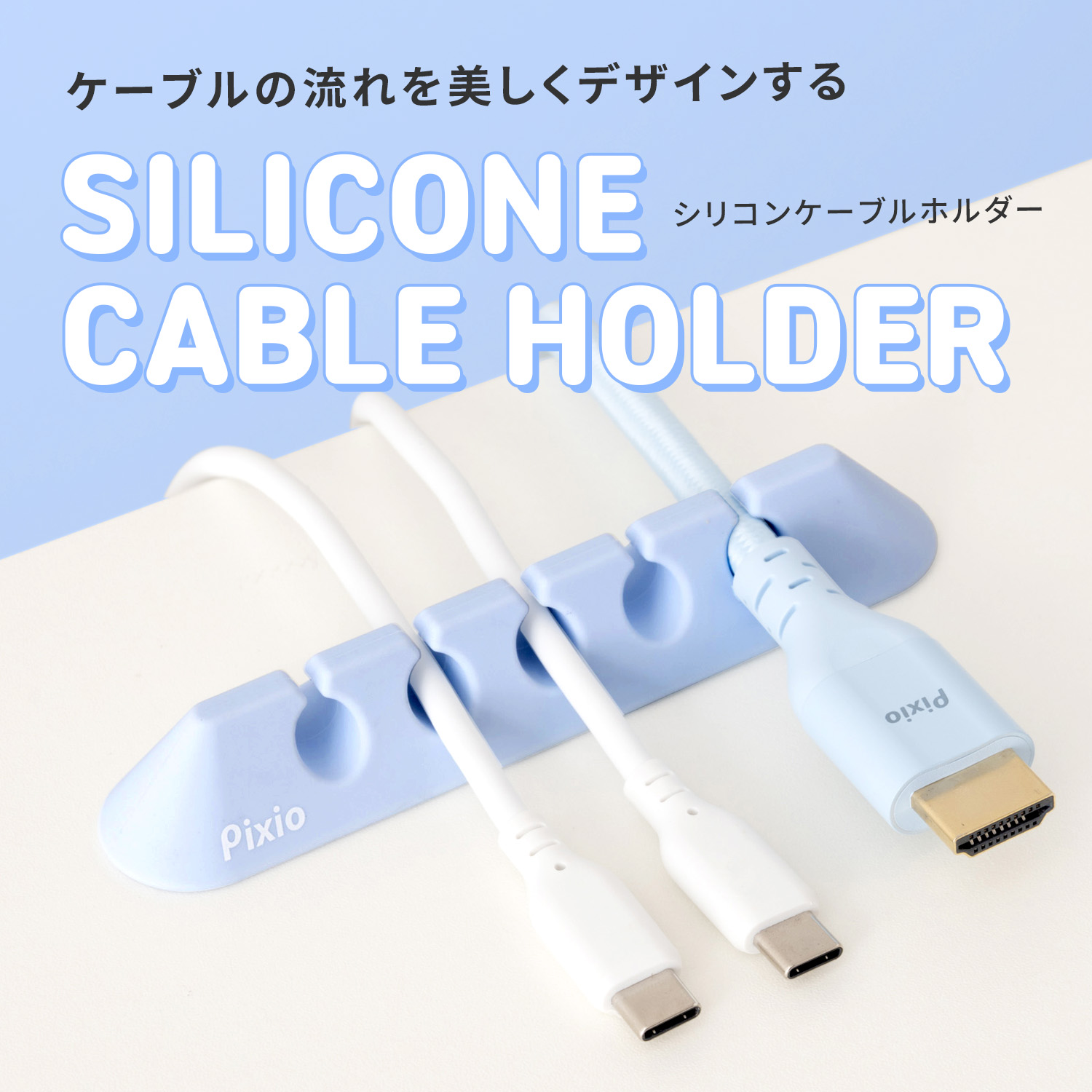 Pixio ピクシオ ケーブルホルダー コードクリップ ケーブルドロップ シリコン ブラック ホワイト 黒 白 ブルー ピンク パープル グリーン ベージュ カラー カラフル パステルカラー かわいい おしゃれ