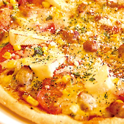 具材:ベーコン・ペパロニサラミ・フレッシュトマト・イタリアンソーセージ・オニオン・ピーマン・ナチュラルチーズ・カマンベールチーズ