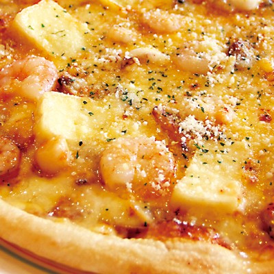 具材:イカ・エビ・アサリ・ツナ・マッシュルーム・オニオン・ナチュラルチーズ・カマンベールチーズ