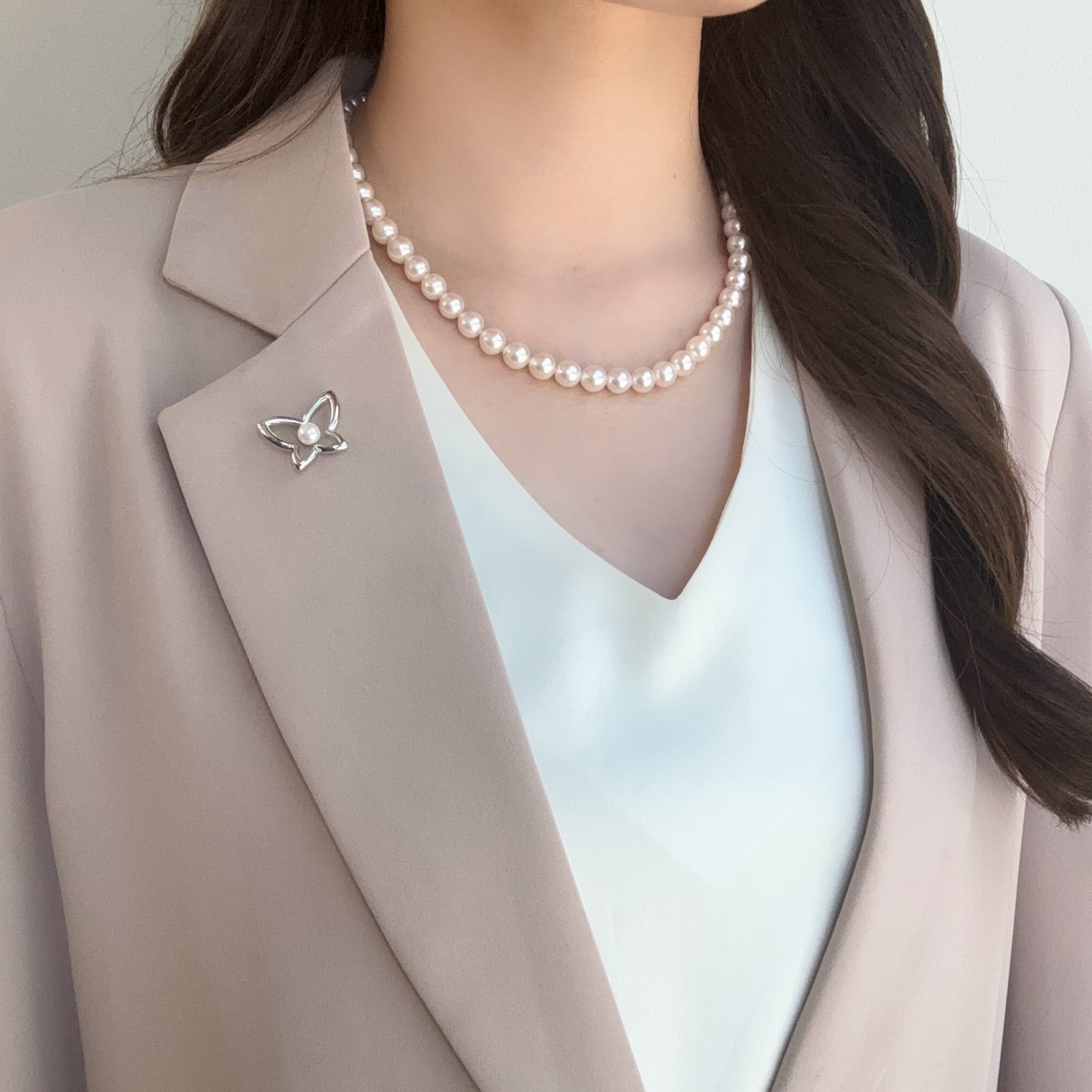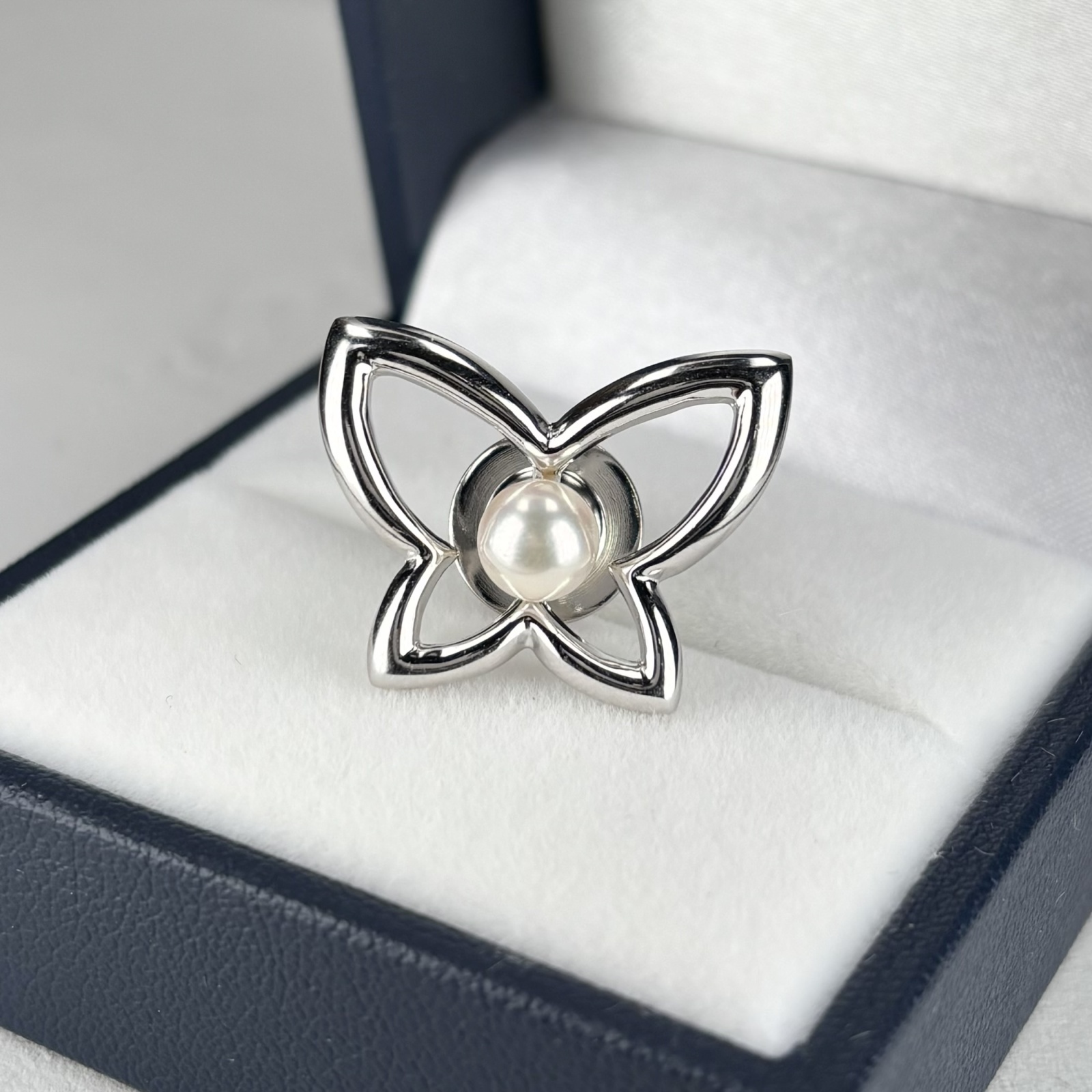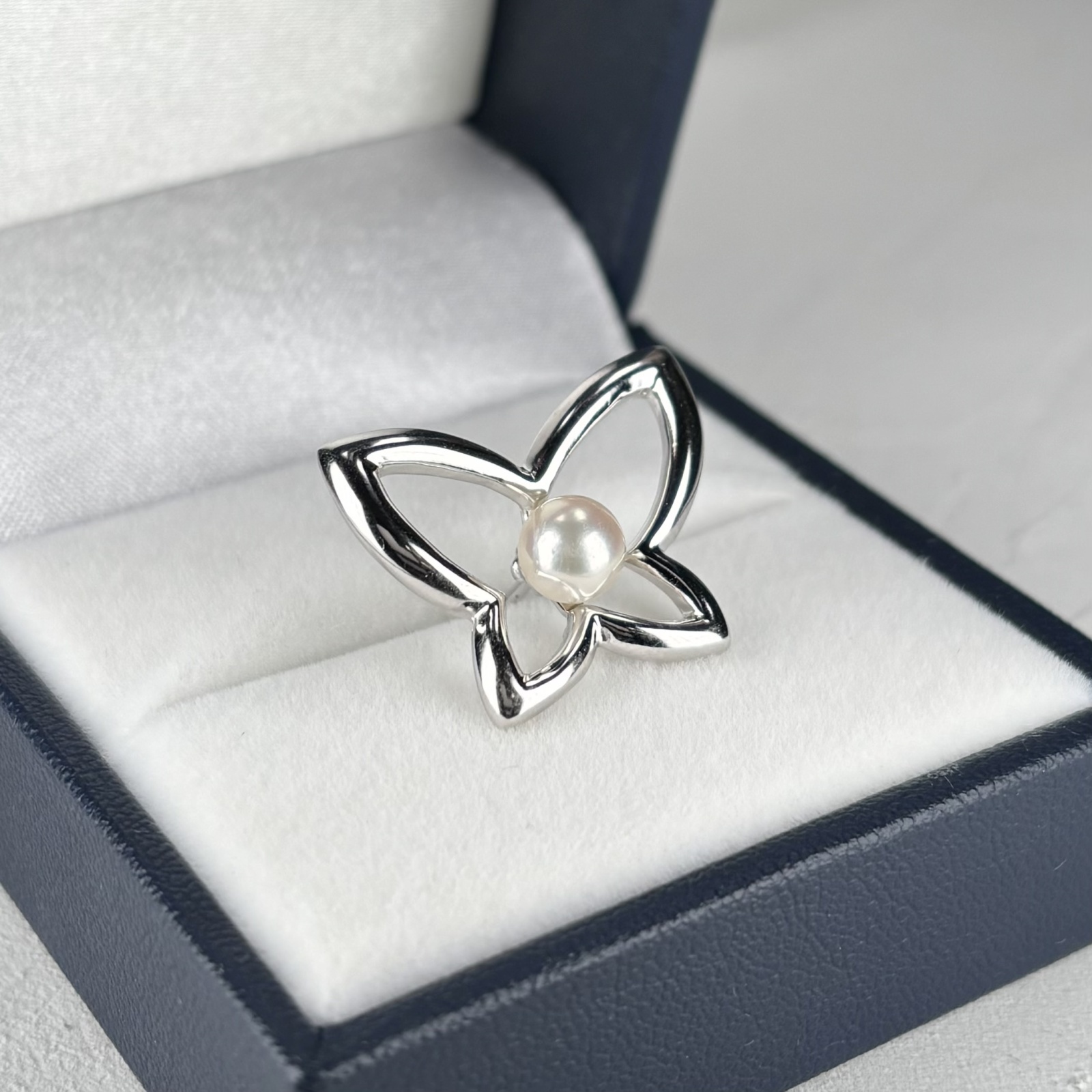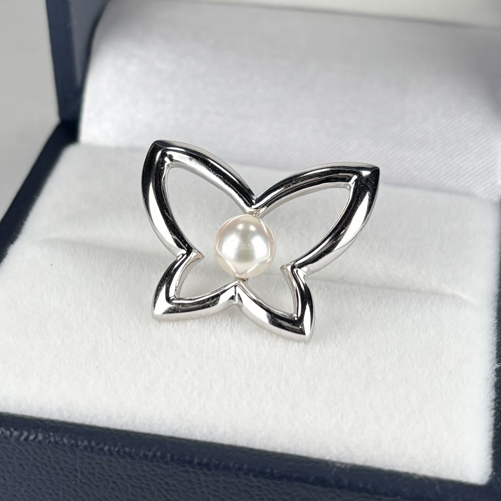 アコヤ真珠 ピンブローチ 蝶モチーフ 5.5-6mm ホワイト ラウンド シルバー(SV925)製