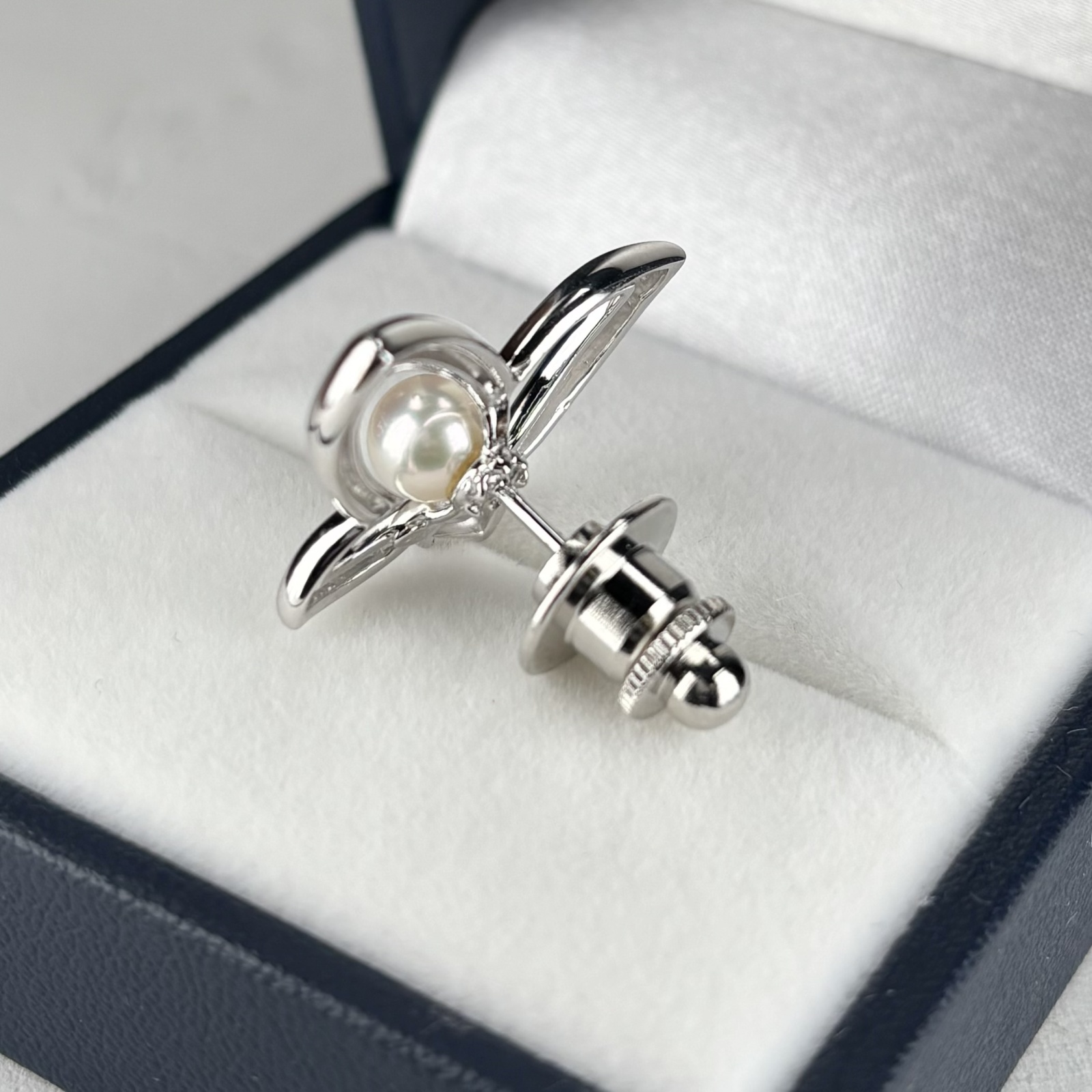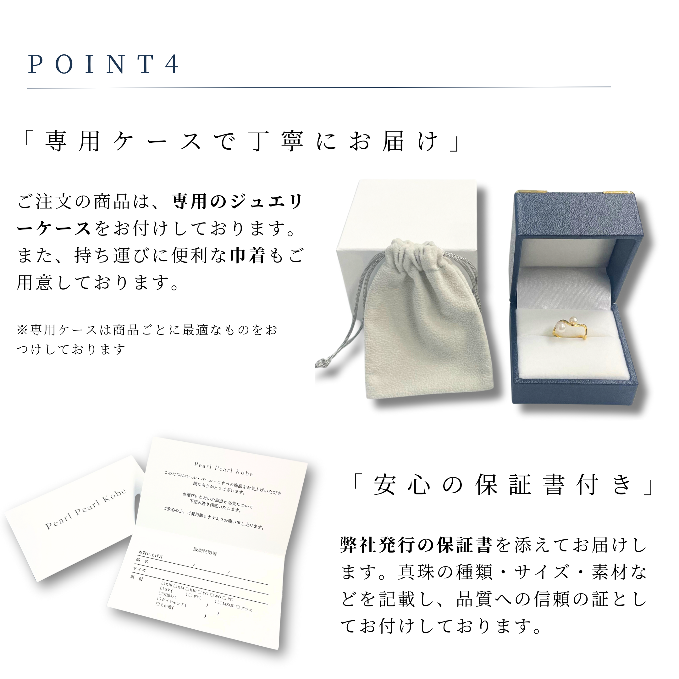 中央には、上品な輝きを放つアコヤ真珠を一粒あしらい、シンプルながらも華やかさを感じさせる仕上がりです。