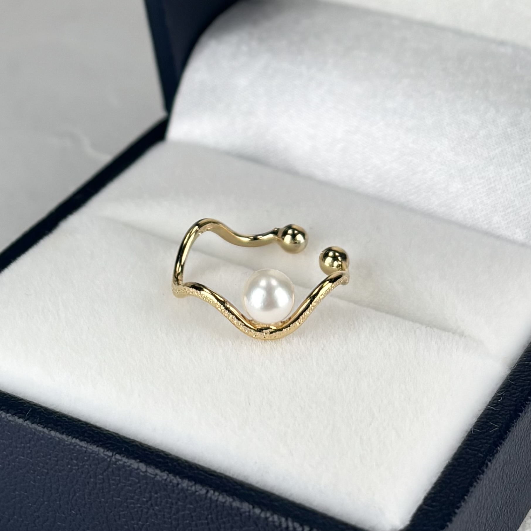 なめらかなウェーブラインに、艶やかなアコヤ真珠を一粒あしらったパールイヤーカフ。アコヤ真珠ならではの柔らかな光沢が、耳元上品なアクセントを添えてくれます。シンプルで洗練されたデザインは、カジュアルからフォーマルまで幅広いシーンに活躍します。
