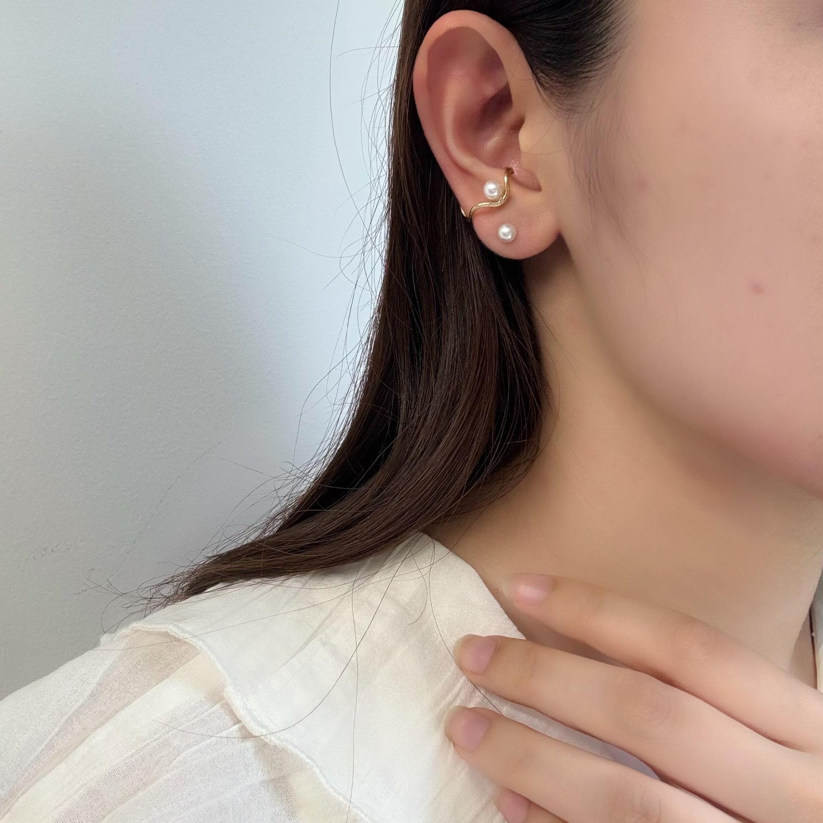 ピアスホールがなくても着けられるイヤーカフタイプで、軽やかな着け心地も魅力。お好きな位置に留めていただけるので、お手持ちのピアスとの重ねづけにもオススメです。