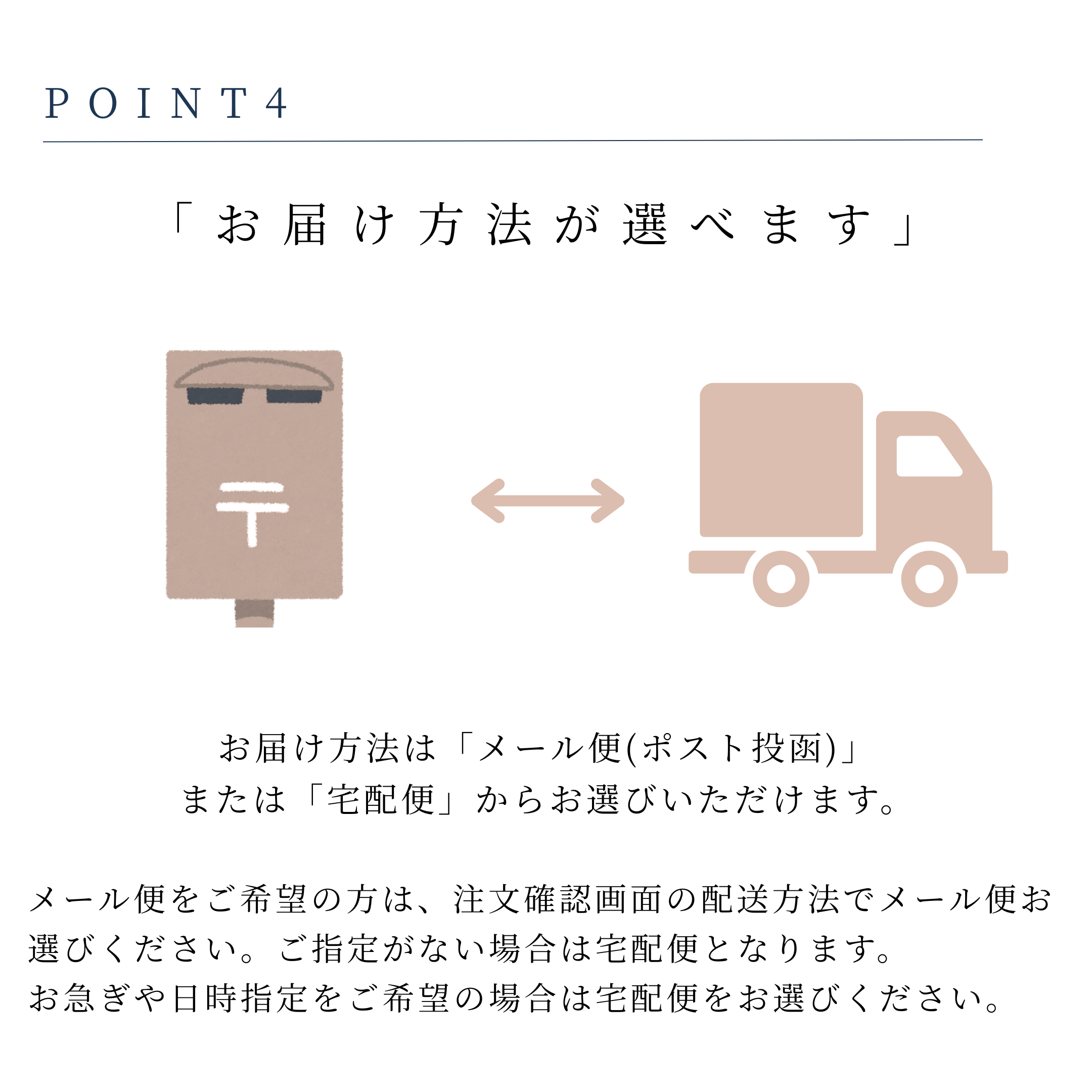 【発送方法】宅配便またはメール便をお選びいただけます。日時指定・代引きは宅急便のみ対応です。※送料はご注文画面でご確認ください。