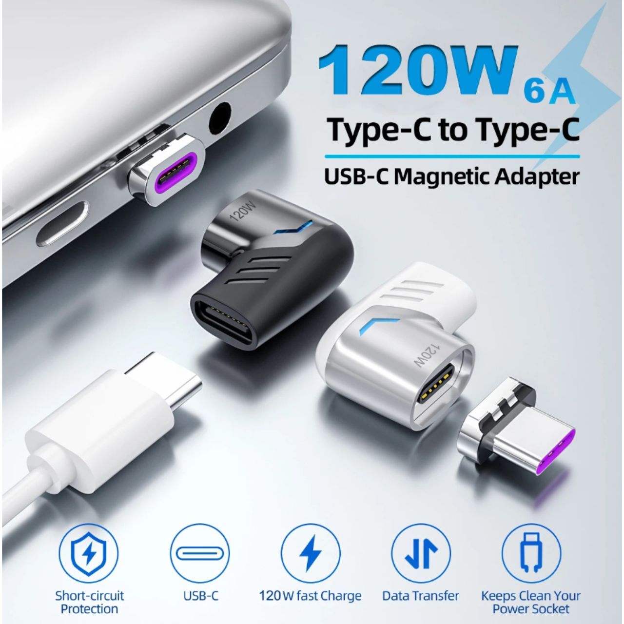 マグネット USB-C アダプター 磁気 Type-C 変換 L字型 PD 120W急速充電 480Mbpsデータ転送 ビ映像出力なし Mcbook/その他のUSB Cデバイス対応
