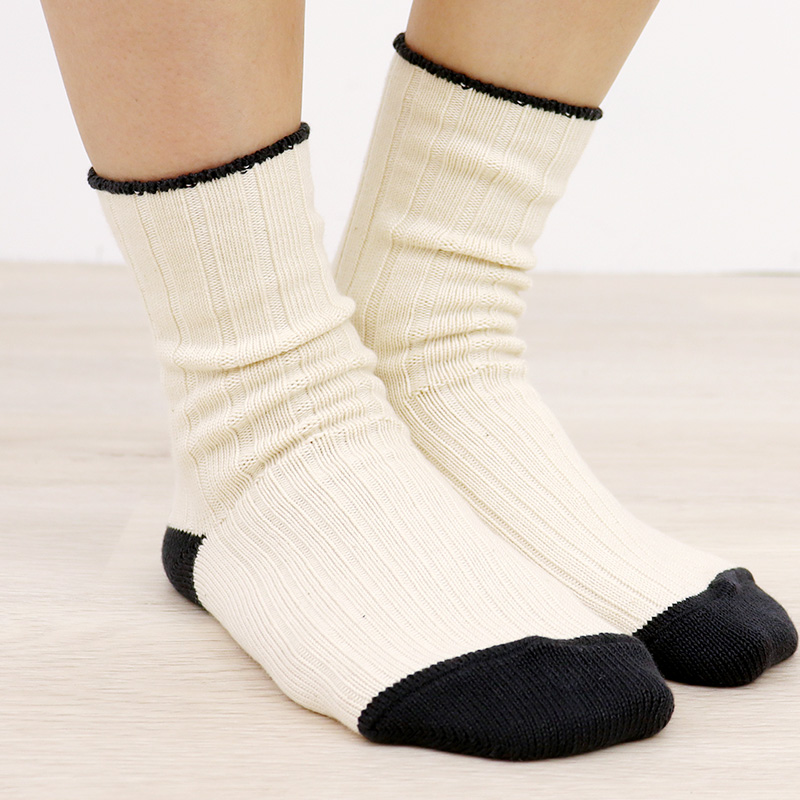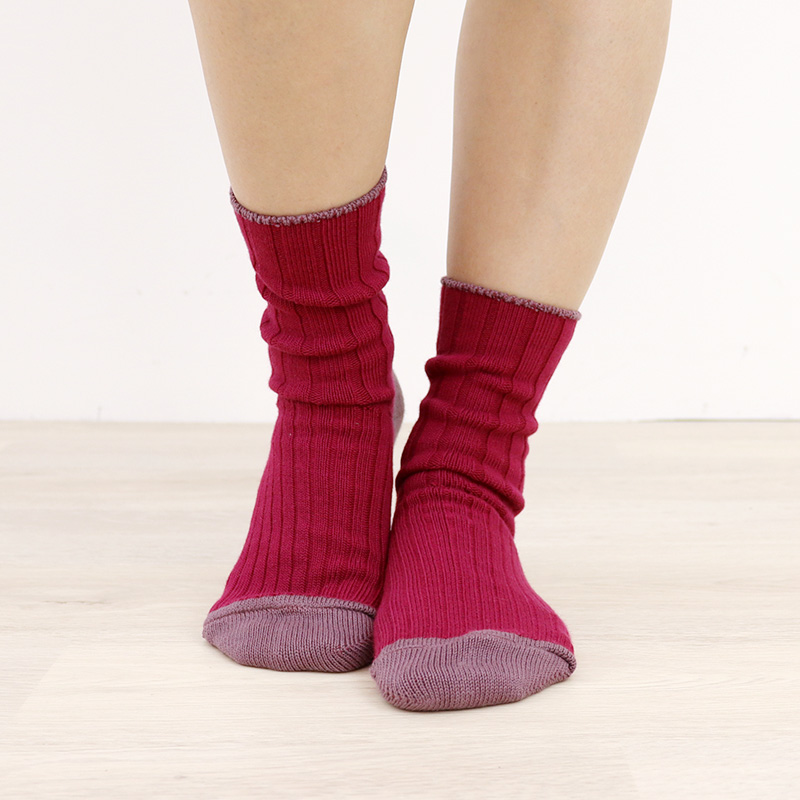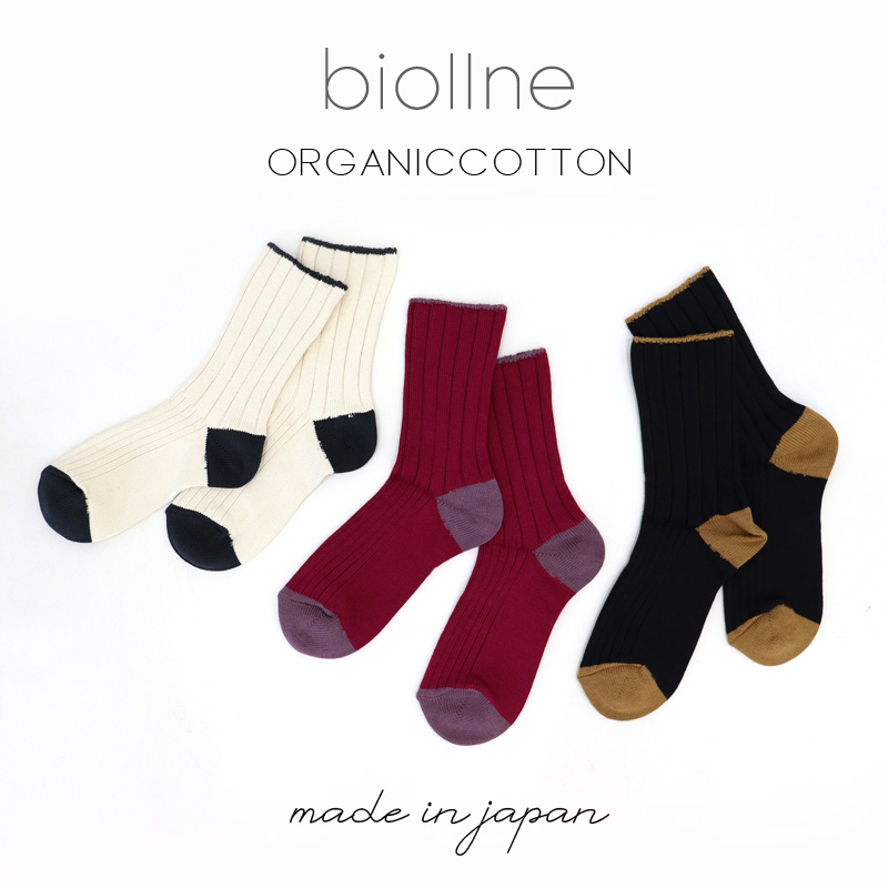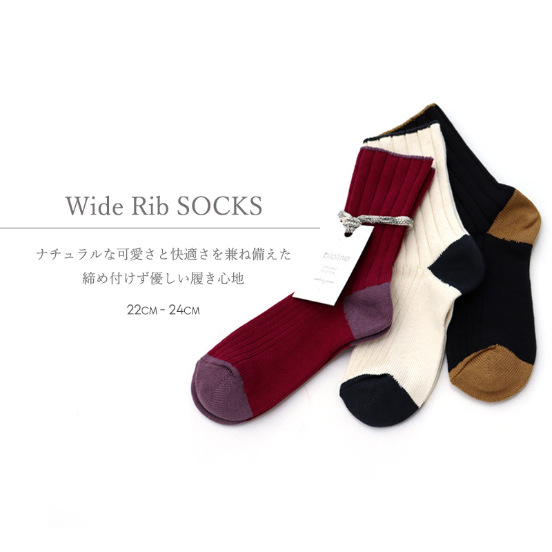 レディース ソックス 日本製 biollne ( ビオルネ ) ワイドリブ編み切り替えバイカラーソックス 330222【メール便対応】女性用 靴下 ギフト