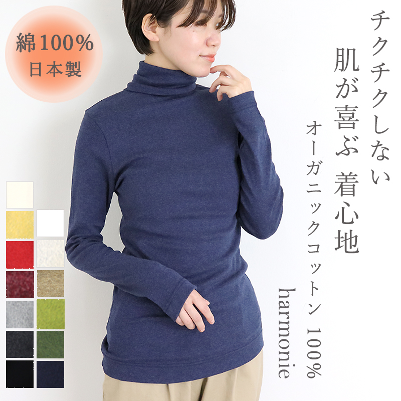 綿100% なので、肌触りが良く チクチクしない ので 敏感肌 の方にも オススメ の タートルネック です。