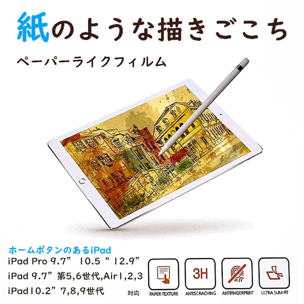【ホームボタンあるタイプ】iPad ペーパーライクフィルム 紙のような感触 マットタイプ iPad Pro 9.7 12.9インチ iPad Air Air2 iPad 5,6世代9.7インチ 7,8,9世代10.2インチ 指紋防止 反射防止 ホコリ取りワイプ付き メール便なら送料無料 ノーブランド品