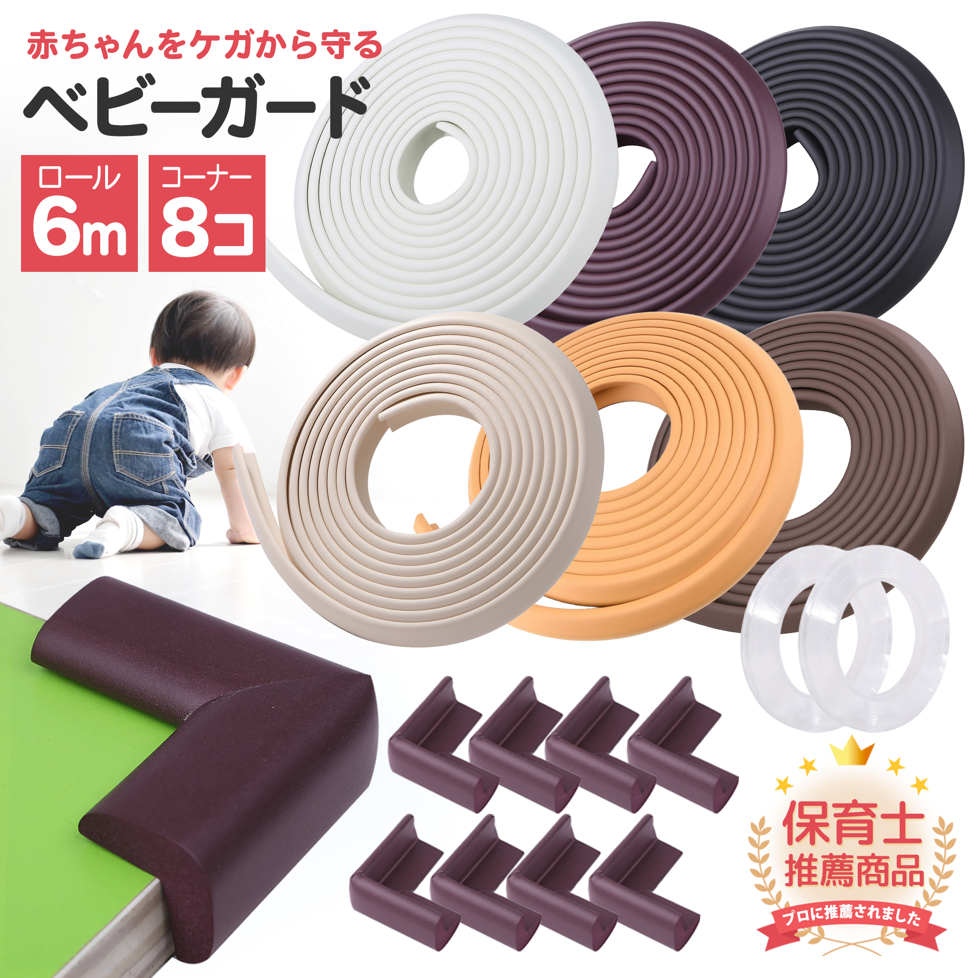 ○サイズ:ベビーガード6m、コーナー8個、ゲル両面テープ(幅1センチ×7メートル)2個