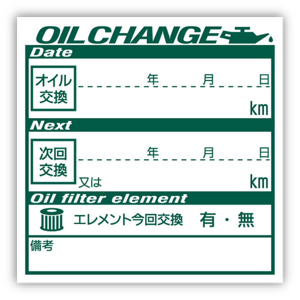 ボールペンでも書きやすく、破れにくい、耐久・耐水・耐油・耐候性に優れた材質に、耐候性UVインキを使用したオイル交換シールです。