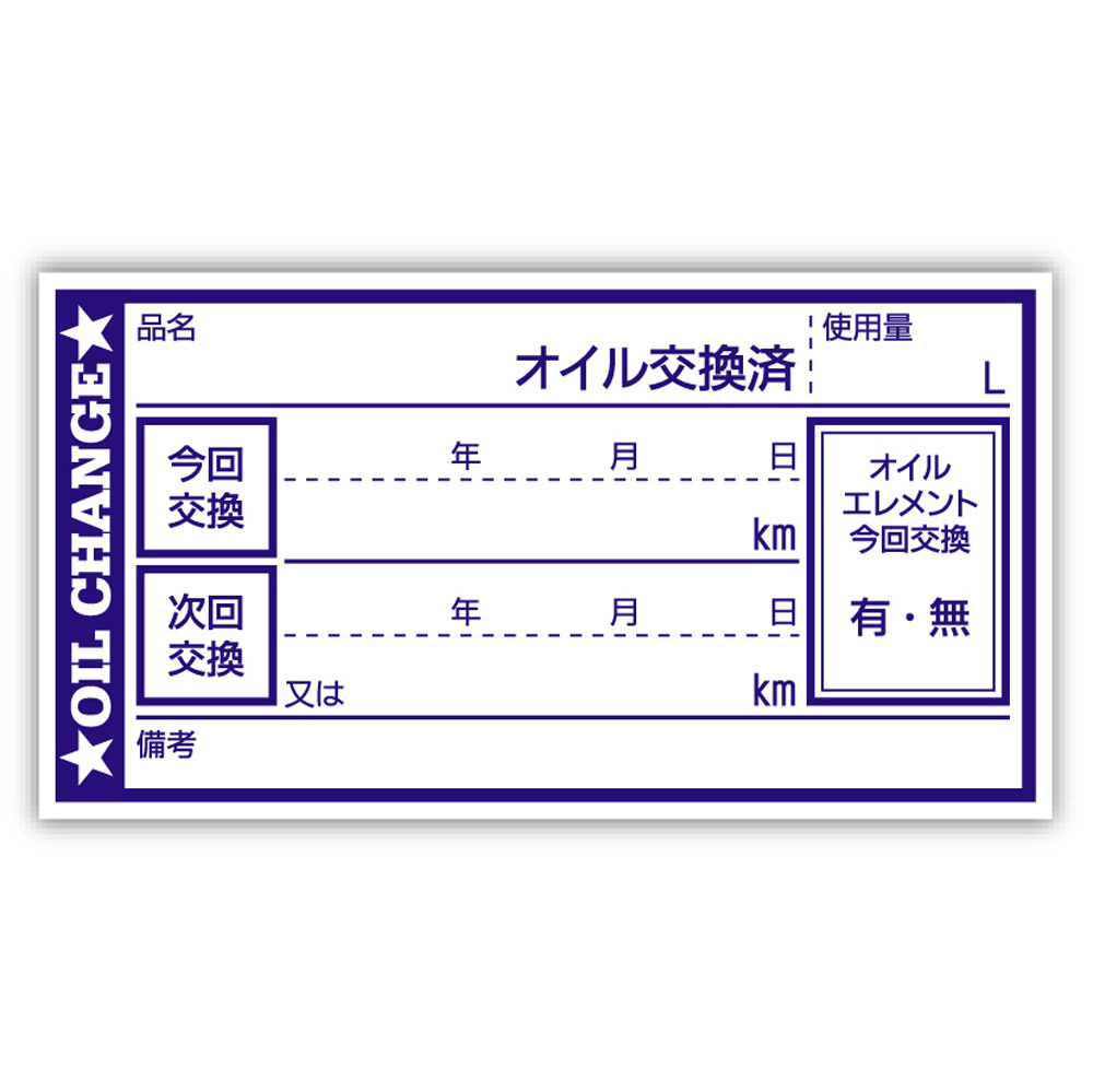 ボールペンでも書きやすく、破れにくい、耐久・耐水・耐油・耐候性に優れた材質に、耐候性UVインキを使用したオイル交換シールです。