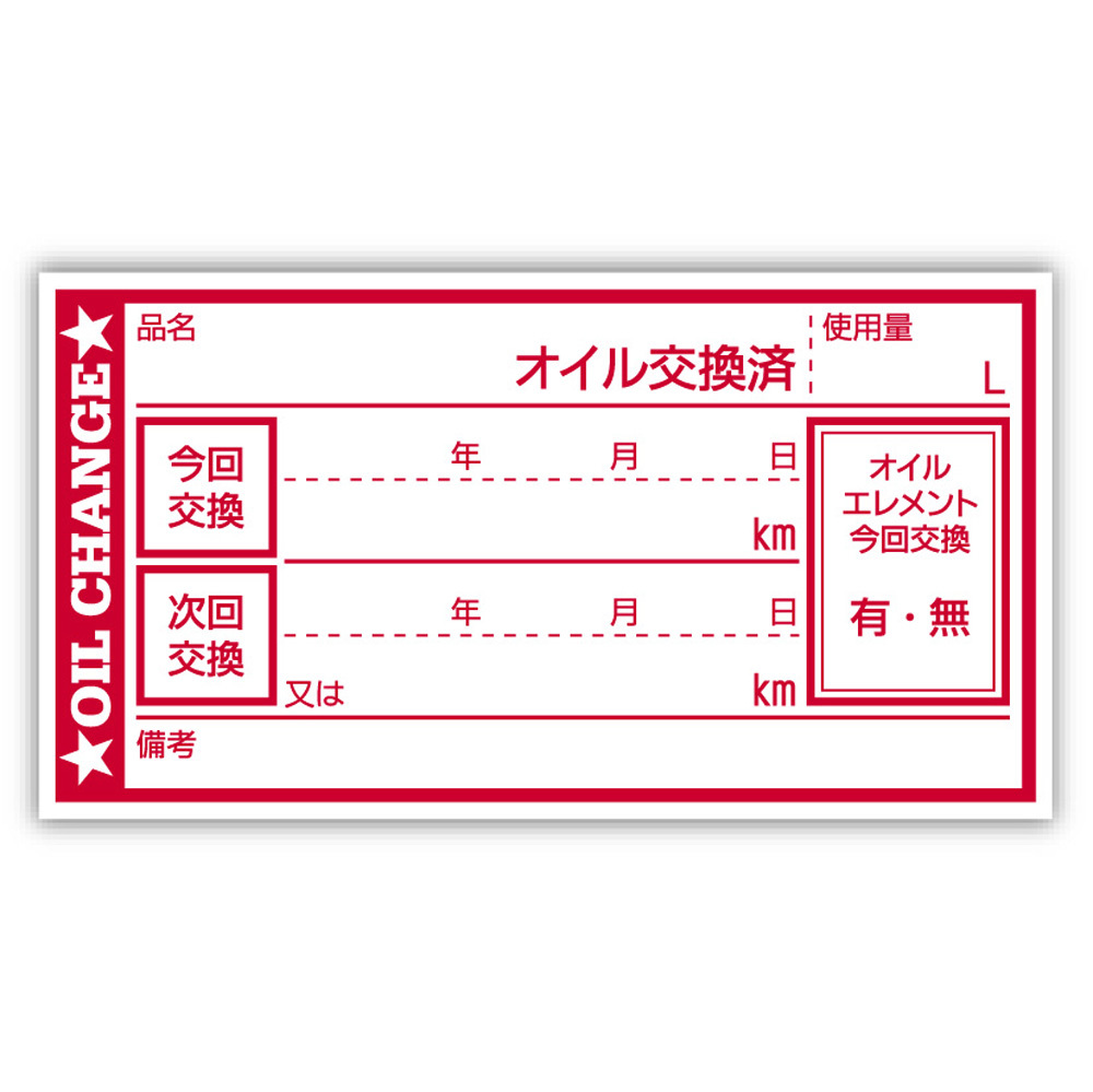 ボールペンでも書きやすく、破れにくい、耐久・耐水・耐油・耐候性に優れた材質に、耐候性UVインキを使用したオイル交換シールです。