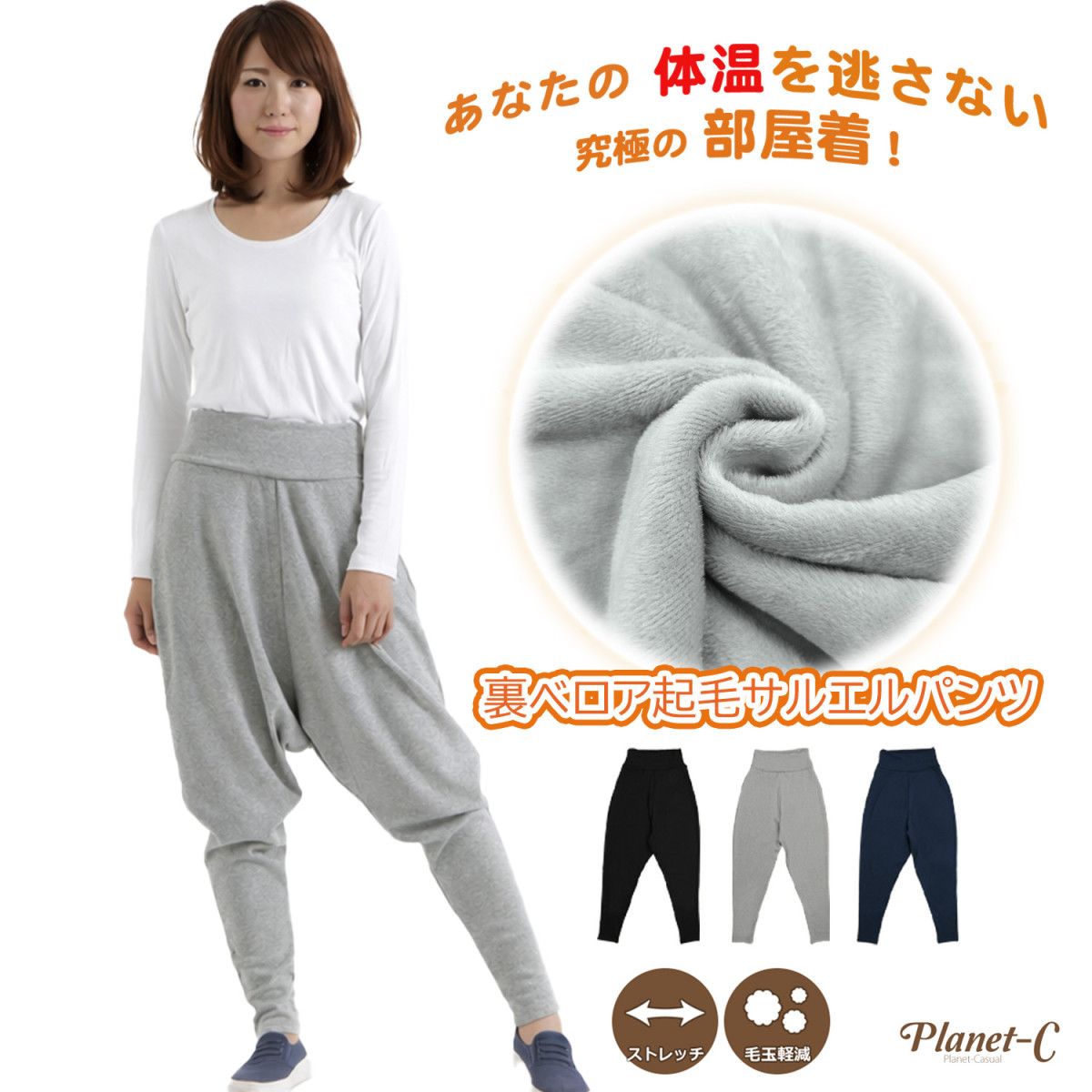 裏ベロア起毛 あったかサルエルパンツ 秋冬 防寒 ボア 暖か素材 ゆったりシルエット ルーム&外出対応 メンズ レディース 爆買