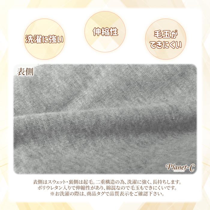 表面は一枚ではいても透けないしっかりスウェット生地。裏面は綿混ベロア風起毛生地を使用しています。