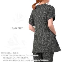 シックな小花柄プリントのチュニック。とろみのある綿/レーヨンベア天はレーヨンのしなやかさに綿の柔らかさと吸湿性を併せ持った、人気素材です。