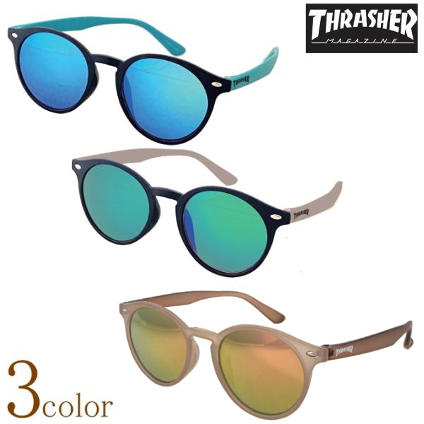 THRASHER スラッシャー 子ども用ミラーサングラス おしゃれ ボストン型 ラウンド型 キッズ カジュアル 紫外線 UVカット ミラーレンズ メガネケース付 男性用 女性用