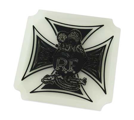 アイアンクロスをバックにスタンディングラットフィンクのデザイン。