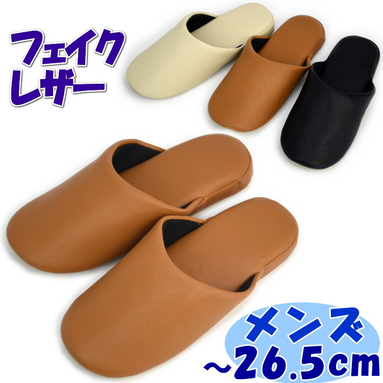メンズ スリッパ ソフトレザー アイボリー ブラウン ブラック 〜26.5cmビニール製 前つまり おしゃれ 室内履き 高級 トイレ ルームシューズ 紳士 ギフト包装無料