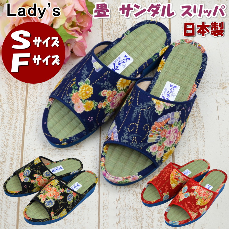 スリッパ 畳サンダル 花柄 和柄 日本製 婦人 Mサイズ Lサイズ ネイビー ブラック レッドタタミ い草 かわいい レディース 女性用 婦人用 ルームシューズ イ草 ゴ