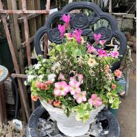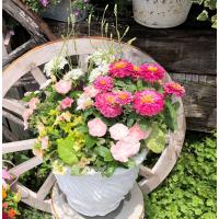 ギャザリングの手法で植えこんだ寄せ植えは、とっても華やか!