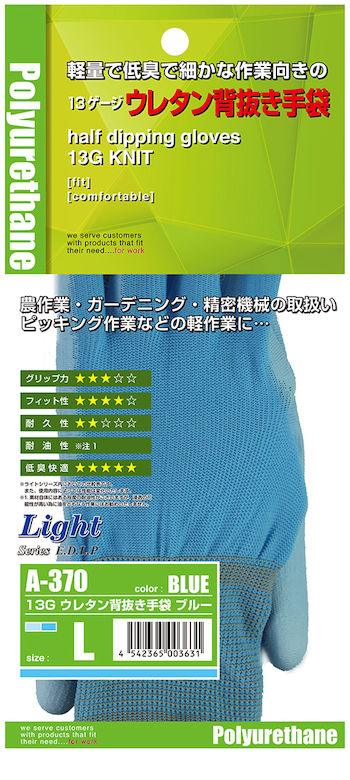 おたふく手袋 A-370 13Gウレタン背抜き手袋
