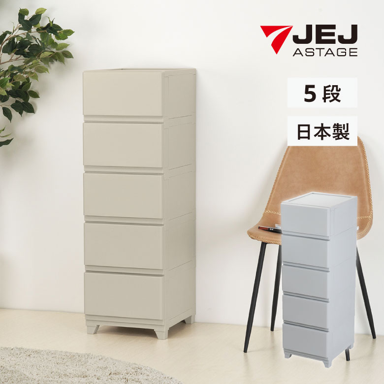 チェスト 壁付 デコニーシーヴォ 5段 ライトグレー JEJアステージ 収納チェスト プラチェスト プラスチックチェスト 引き出し 引出し 脚付き 中が透けない