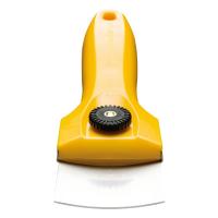 薄い刃を反らせて使う替刃式のスクレーパー。刃幅25ミリ。ピンポイントの作業から、刃幅いっぱいを使う作業まで力の入れ加減によって簡単に調節できます。簡易スクレーパーとしても使えるプラスチック製保護キャップ付き。