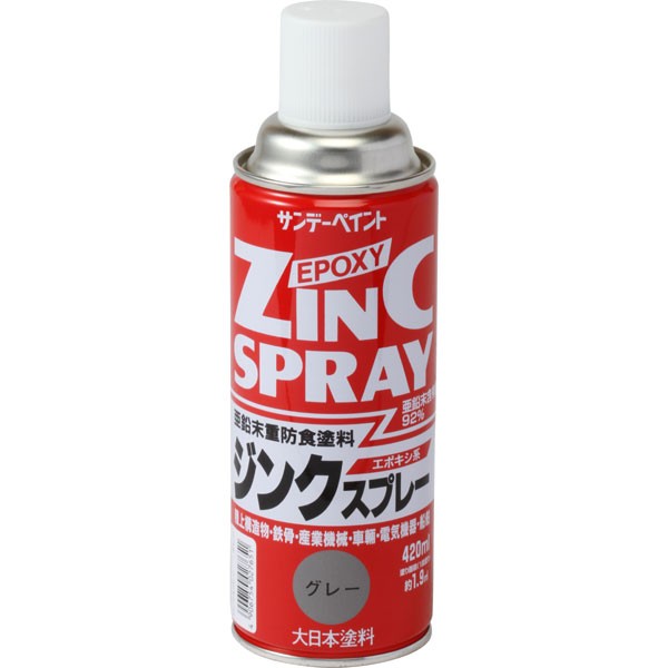 サンデーペイント ジンクスプレー 〈エポキシ系・亜鉛末重防食スプレー〉 グレー 420ml さび止め塗料スプレー