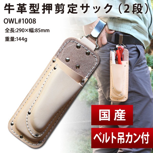 OWL #1008 牛革型押剪定鋏サック(2段) 吊カン付