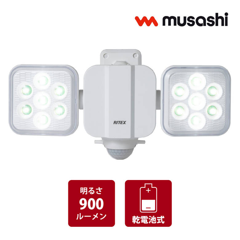 LED センサー ライト 屋外 5Wx2灯 乾電池式 LED乾電池センサー 防犯 LED-270 対策 照明 玄関 庭 畑 車庫 ガレージ 駐車場 ムサシ RITEX ライテックス