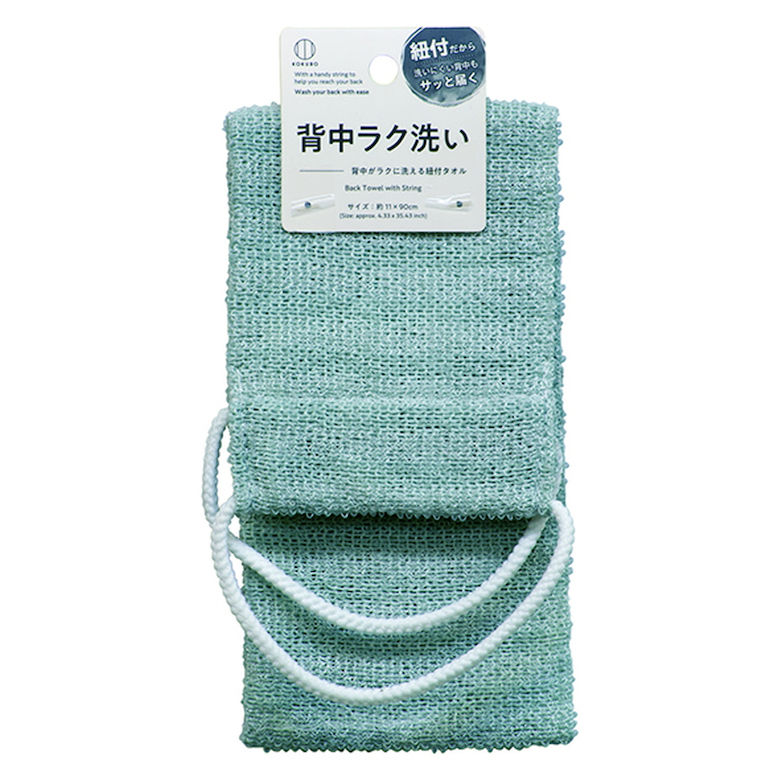 ●紐付だから、洗いにくい背中もサッと届いて、しっかり洗えるタオル。