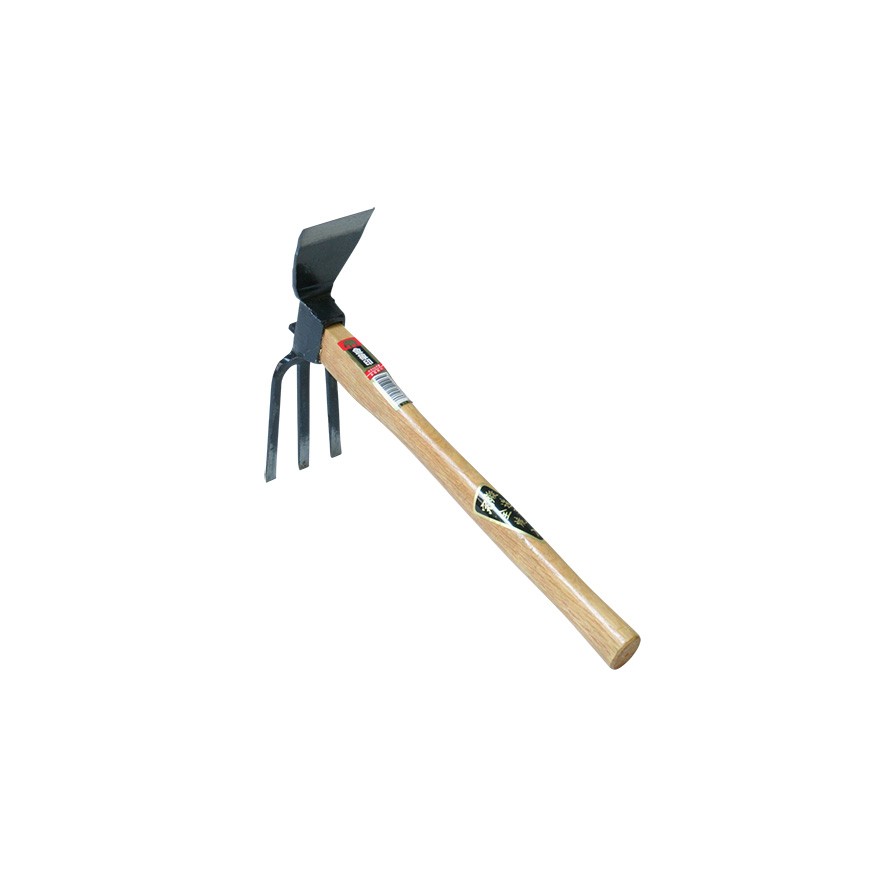 ■頭部はスチール製ワンピース(無溶接一体加工)で、柄は丈夫で使うほどに手になじむ樫(かし)材を採用した掘り起こし作業用片手鍬。