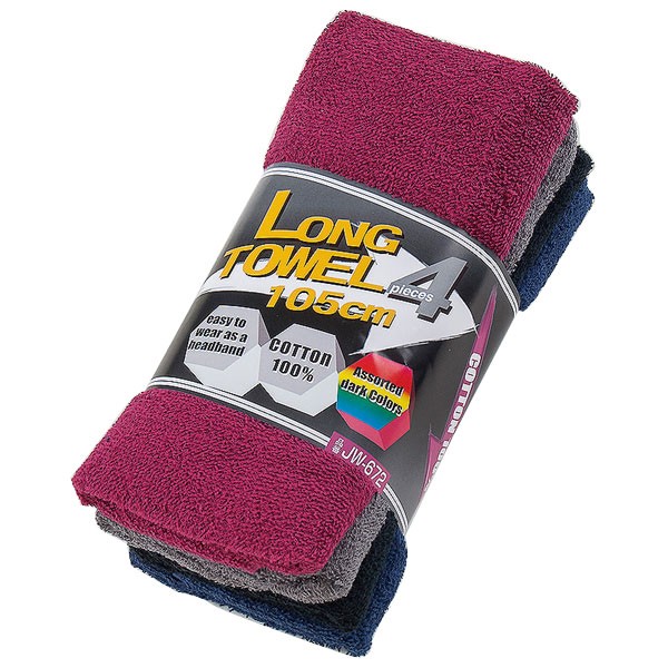 おたふく手袋 JW-672 ロングタオル 34cm×105cm 4枚組 カラーアソート