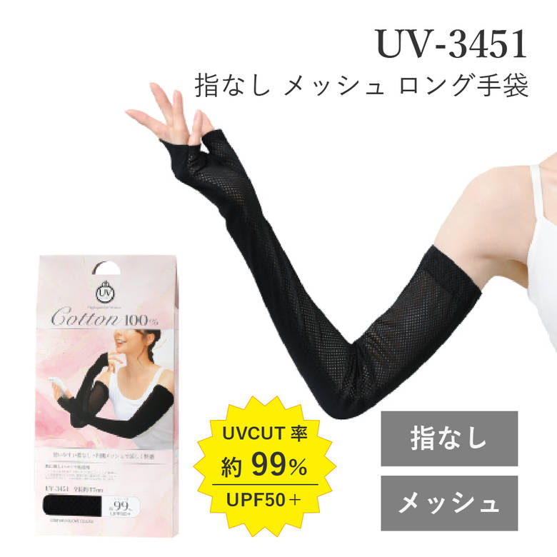 アームカバー uvカット 99% ロング メッシュ 指なし UPF50+ おしゃれ 日焼け対策 自転車 手 腕 手の甲 テニス ゴルフ ドライブ スポーツ おたふく手袋 UV-3451