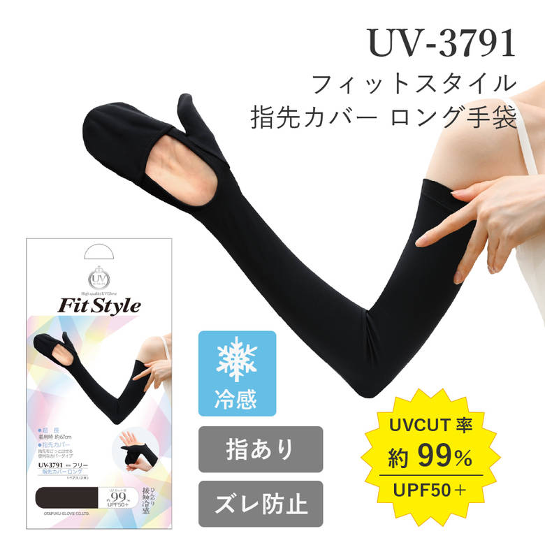 アームカバー uvカット 99% ロング 接触冷感 UPF50+ 黒 指なし 指先カバー 日焼け対策 自転車 おしゃれ 手 腕 手の甲 テニス ゴルフ ドライブ スポーツ おたふく手袋 UV-3791