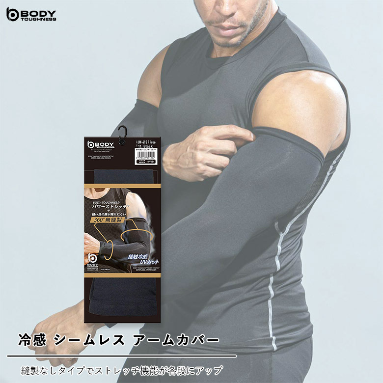 ボディタフネス JW-615 BT 冷感 シームレス アームカバー ブラック フリーサイズ おたふく手袋 夏物 インナー