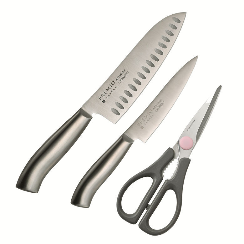 ヤクセル 31813 プレミオAS 三徳包丁・ペティナイフ・キッチンはさみ キッチン3点セット