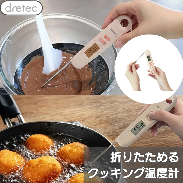 dretec 折りたためるクッキング温度計 O-903PK ピンク ドリテック 料理 測定 収納 コンパクト 揚げ物 チョコレート 温度 計測 おしゃれ 人気 キッチン用品
