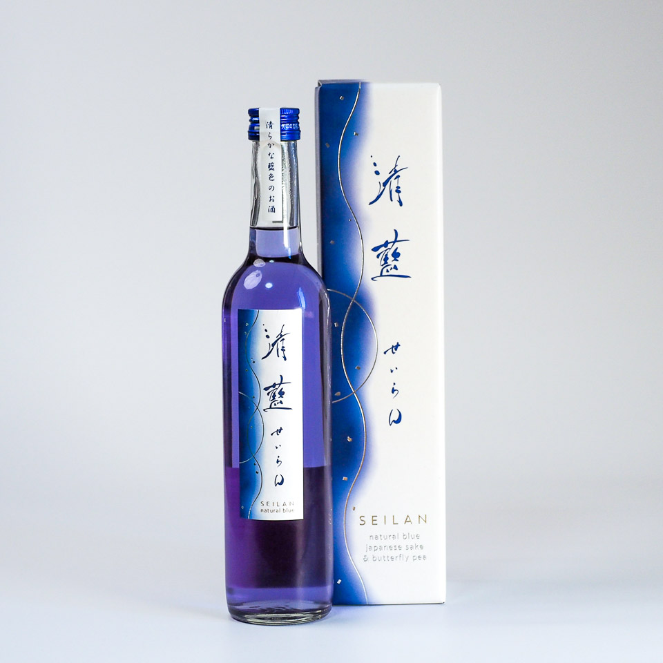 本格吟醸酒に、バタフライピー (蝶豆) という青い天然ハーブを加えてつくりました。